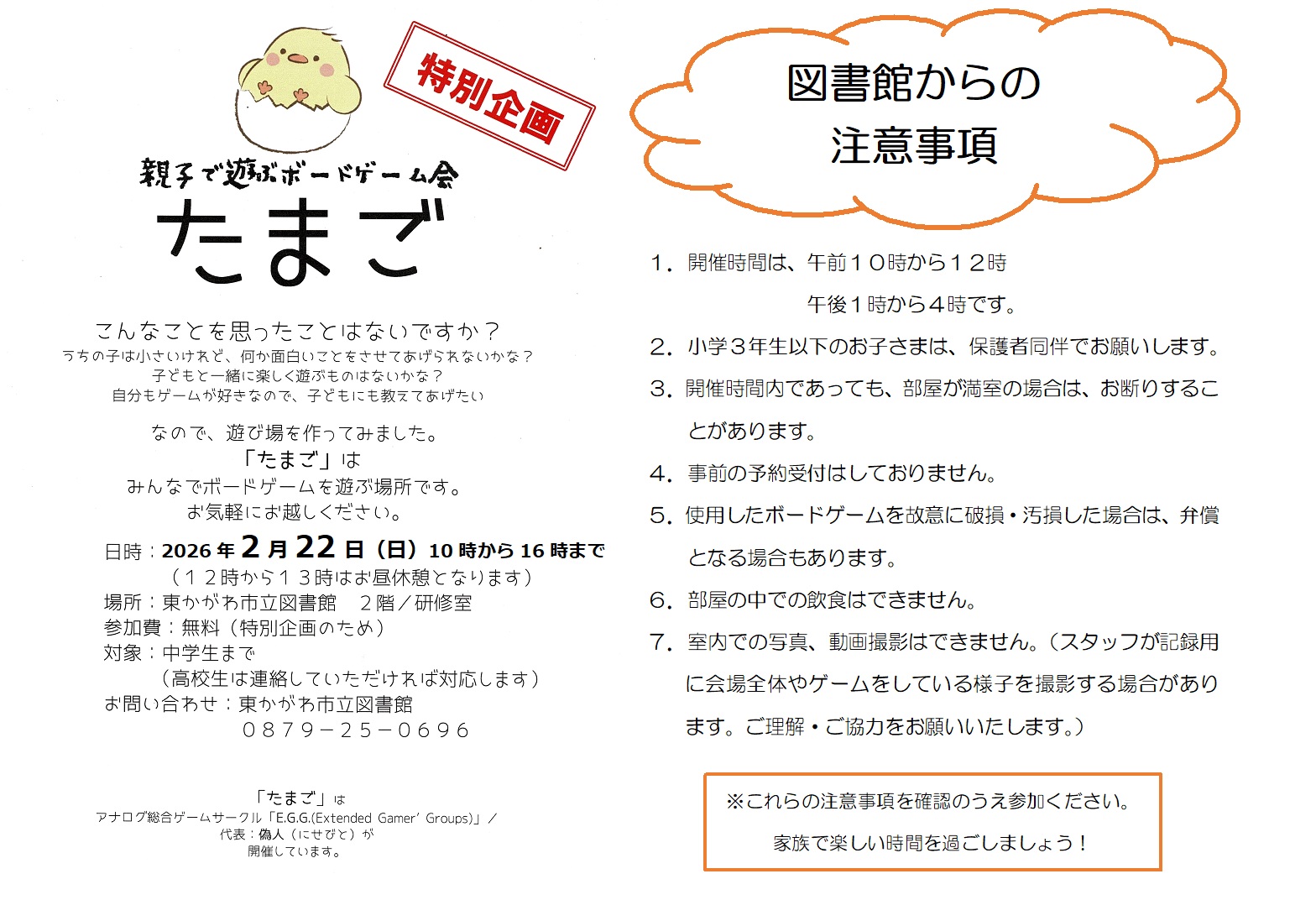◆2月20日(金)~22日(日)・・・交流プラザまつりのため - イベント「親子で遊ぶボードゲーム会たまご」